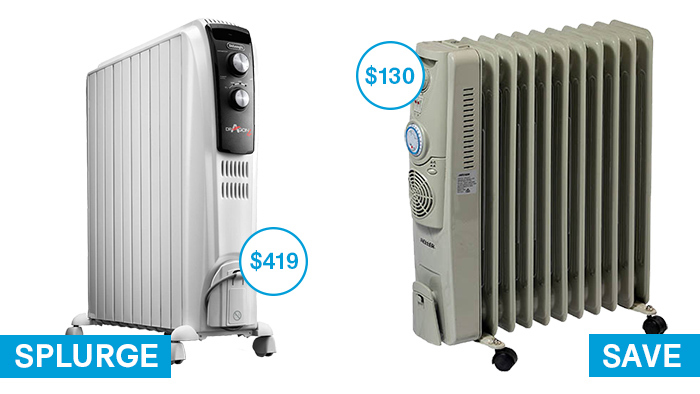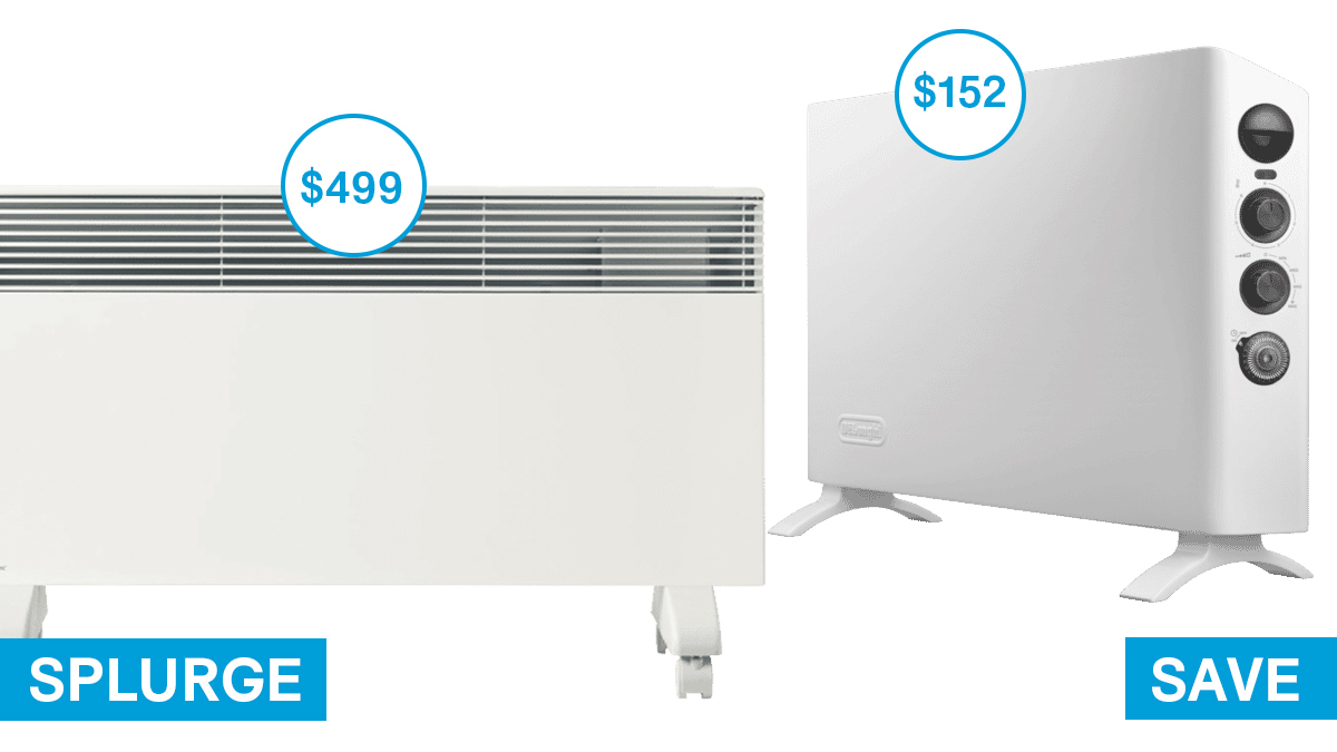 We’re going to flip the script a little for this comparison. Sure, these heaters scored pretty much the same in our testing, so you might be tempted to go for the cheaper option. And normally we’d say – yep, go right ahead and save yourself $289.