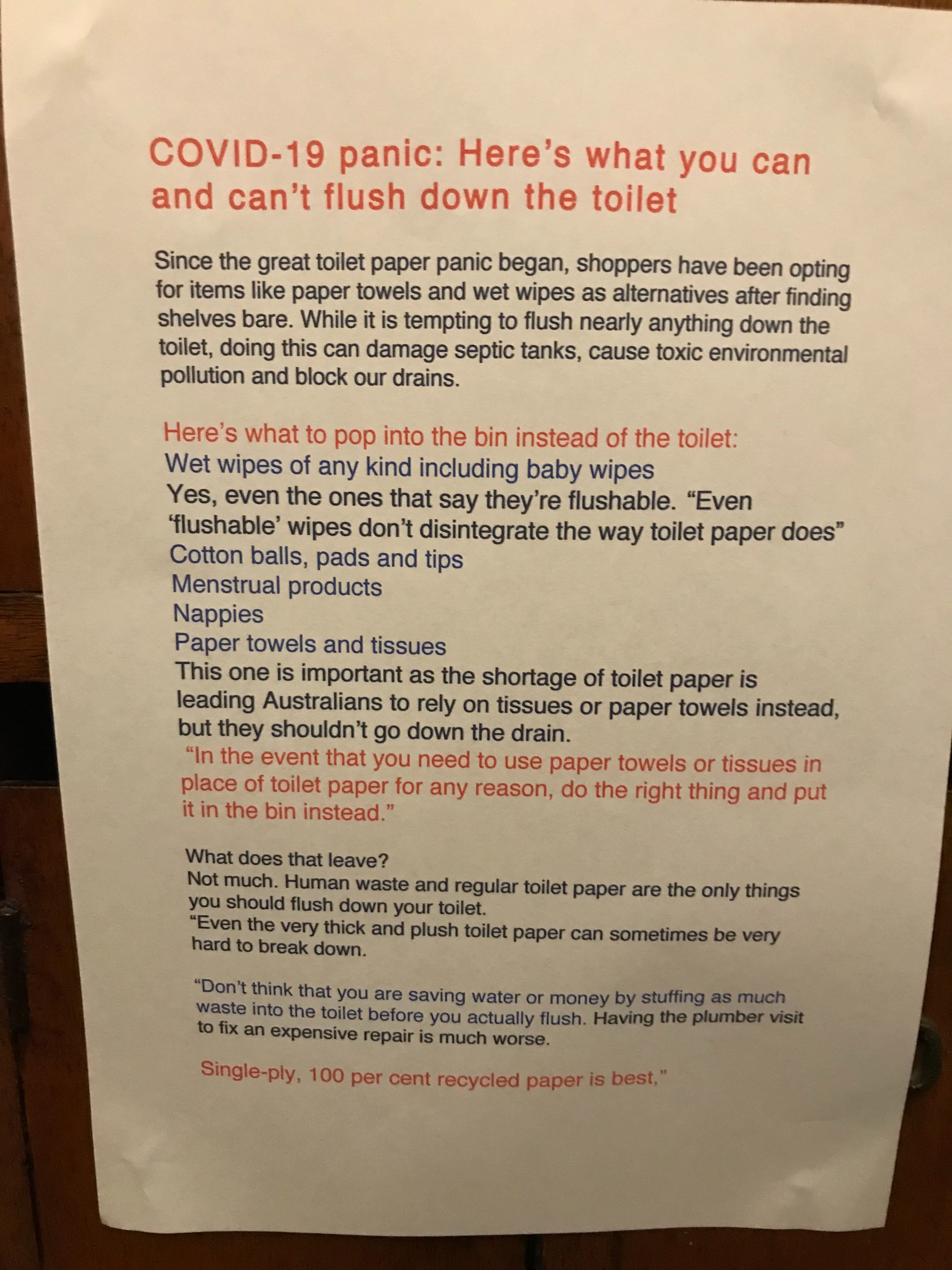 Many strata committees are posting their own toilet-flushing guidelines for residents.