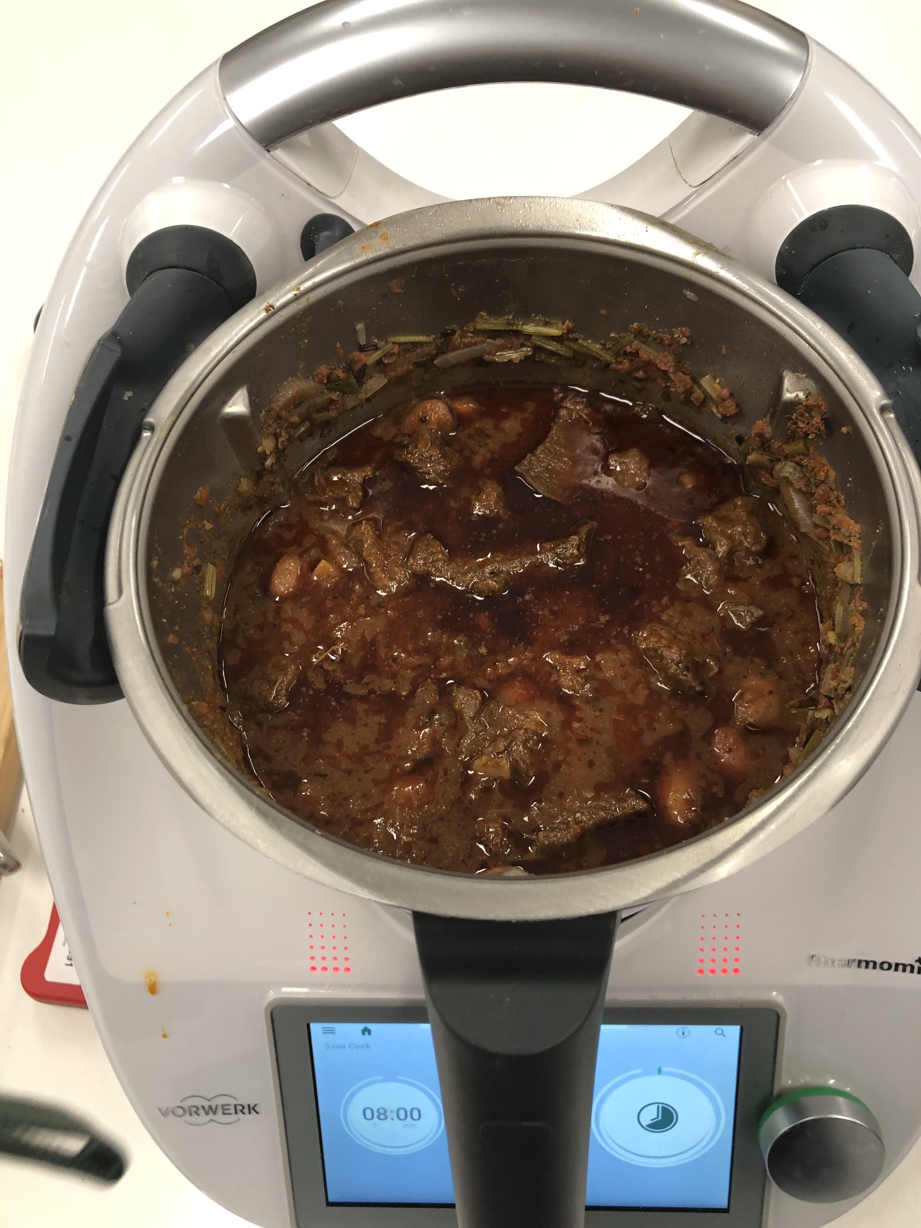 “As slow-cook mode [on the Thermomix] has a set temperature of 95°C, it is possible that increasing the temperature may help to thicken the sauce,” says Fiona.