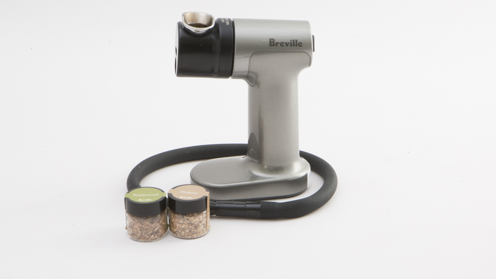 If you follow the provided instructions, it’s very easy to use. You can do the smoking before or after you’ve cooked the food. To get started, place your food in a bowl or container and cover it tightly with plastic wrap – place the end of the hose under the plastic wrap as well. Add a pinch of the supplied hickory or applewood chips to the gun, turn on the gun, light the chips, then activate the fan that blows the smoke through the hose to fill your container. Breville recommends one to three minutes for smoke infusion to work.