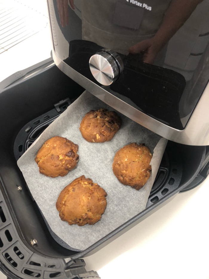 Fiona says the air fryer is great for whipping up a batch of choc-chip cookies – once you’ve made the dough and frozen it, you can have freshly baked cookies within 15 minutes.