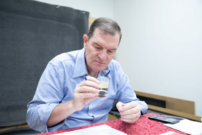 Three experts test the espressos in a ‘blind’ tasting, checking the colour and thickness of the crema (the tan-coloured foam on the top of an espresso shot), aroma, flavour, mouthfeel (for example, creaminess or wateriness) and aftertaste.