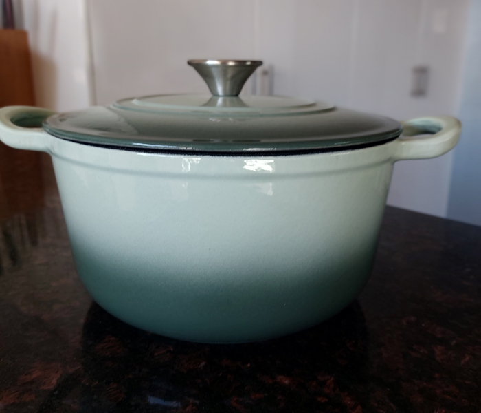 When I did my deep-dive on the Kmart pot, I discovered that my colleague Tracy had owned one for a couple of years. She used hers mainly for stovetop cooking and found the enamel on the outside had started to chip during that time.
