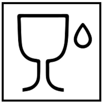 You may see this symbol on glass racks and brackets designed to hold delicate wine glasses so they can be washed without damaging them, or it may indicate a delicate/glassware wash program.