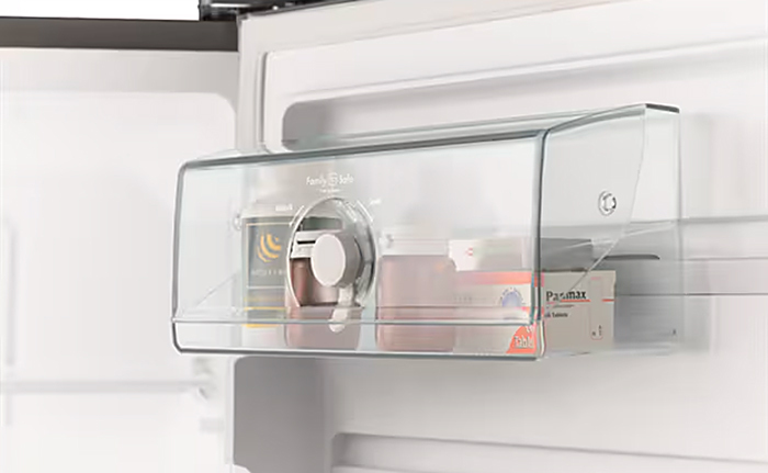 Lockable compartments are a great safety feature, but not many fridges have them. If yours doesn’t, it’s a good idea to keep your medicines in a clearly labelled container, ideally one that’s challenging for children to open, rather than loose on the shelf.