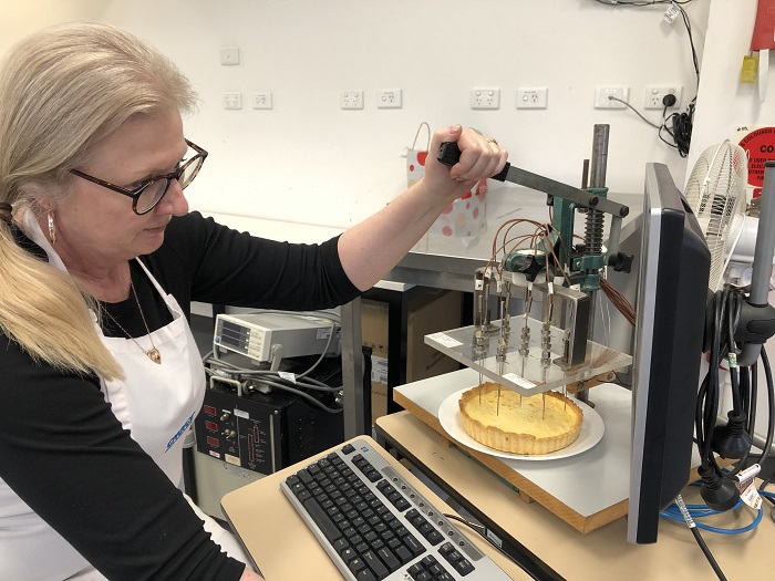 CHOICE home economist Fiona Mair tests each microwave’s reheating performance with the ‘hedgehog’ – an instrument with 12 needles that measure temperature throughout a quiche.