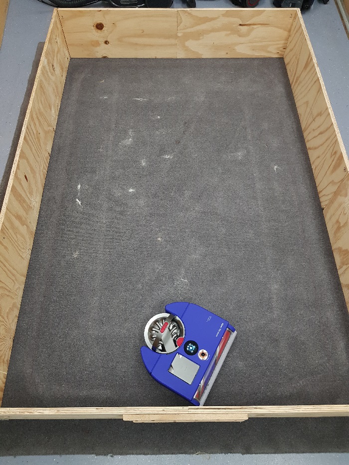 The sand provides a measurable way to analyse dirt pick-up and also lets us see whether the robot missed any big areas.