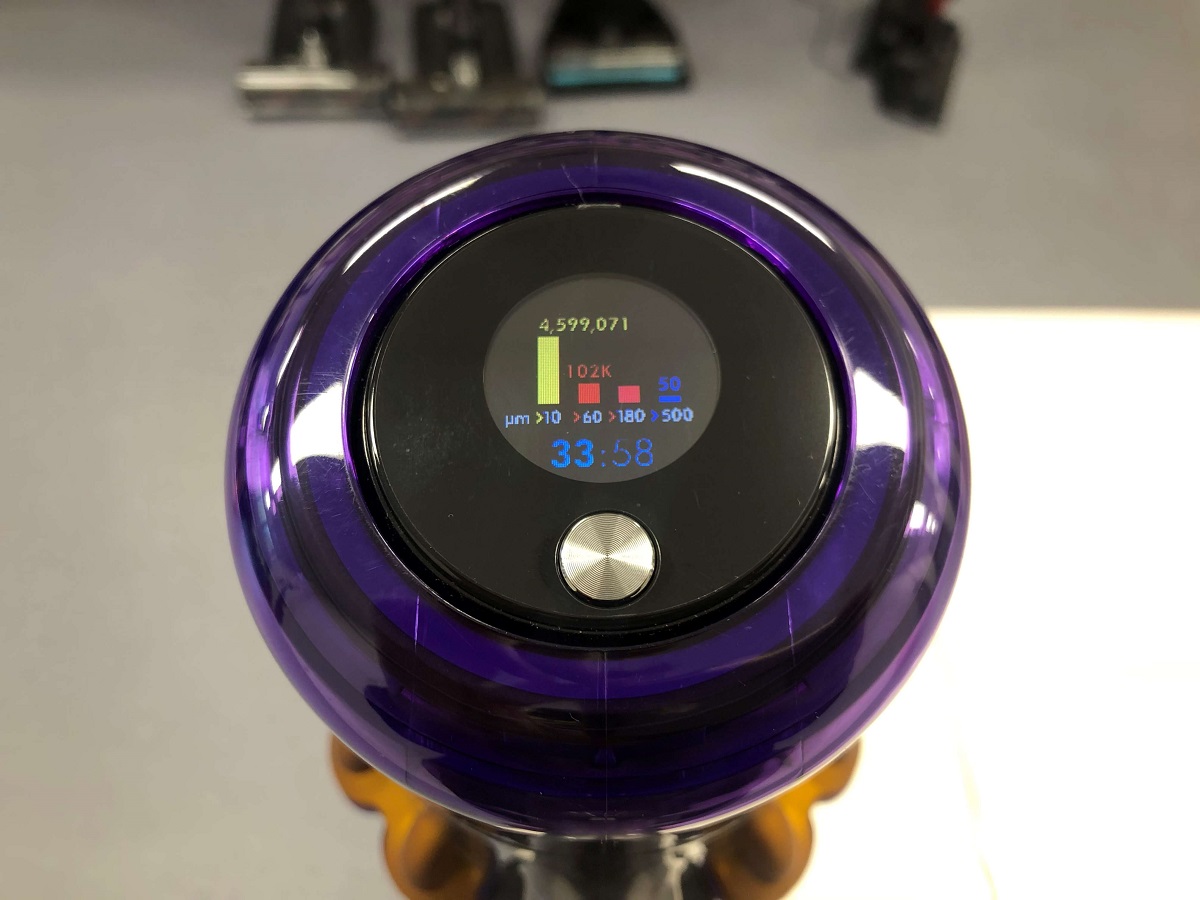 We’d be here forever if we attempted to determine how accurate the sensing technology is, but the numbers on the LCD screen do increase as you vacuum, and as you’d expect, there’s a huge amount of small particles compared with big ones.