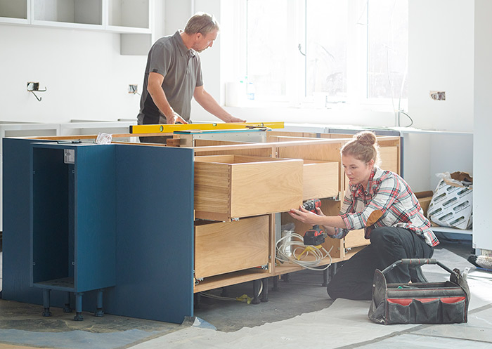 There are things you either aren’t legally allowed or shouldn’t do yourself. Hooking up your sink and dishwasher to existing plumbing (or installing new plumbing to suit your new kitchen layout), along with electrical work and gasfitting, should be done by licensed, skilled and experienced plumbers and electricians.