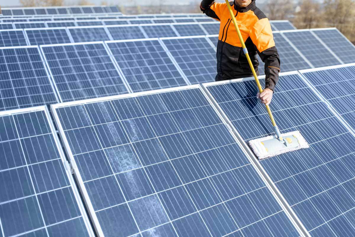 If it hasn’t rained in a while, you can give your panels a rinse by hosing them off from the ground instead or follow the manufacturer’s cleaning instructions. But be careful not to damage them as it may void your warranty.