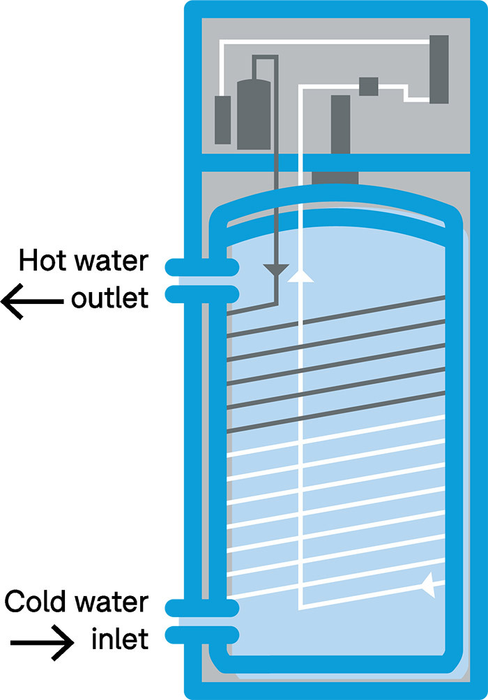 Gas-boosted systems can run from natural (reticulated) gas, or from LPG bottles. LPG is typically more expensive to run, but it’s a good option if you already have LPG bottles installed. The gas booster is usually a continuous flow (“instantaneous”) gas water heater – if you turn on a hot water tap in your home, but the water coming from the storage tank is too cold, the heater starts up and heats the water to the right temperature before it reaches your taps. This form of boosting is often the most efficient because it only heats the water when hot water is actually being used.