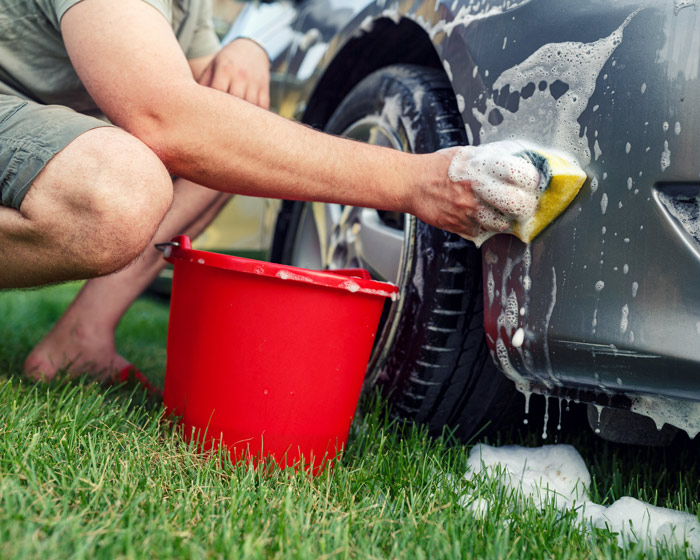 When cleaning your car at home, remember to clean on the lawn if you have one; or, if you don’t want to damage your lawn with the weight of the car, wash on the driveway and direct the waste to the lawn with barriers.
