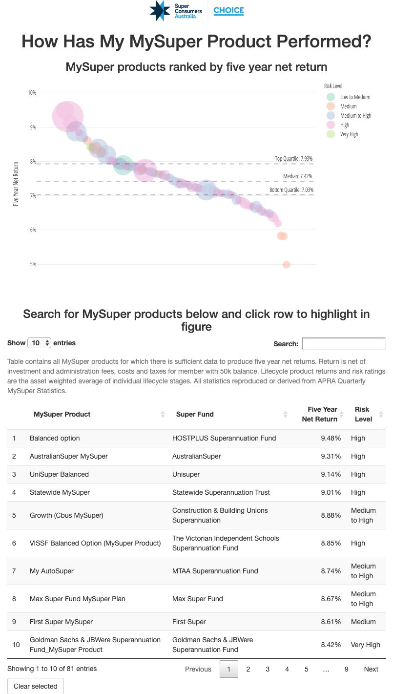 Research by Super Consumers Australia at CHOICE found that the top-quartile MySuper products over the past five years returned at least 7.93% for their members.