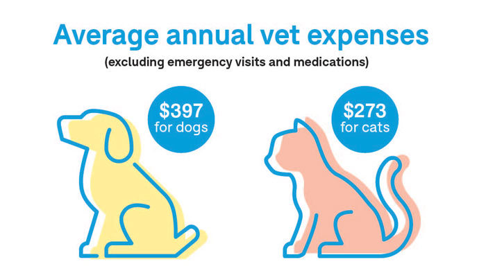 Average annual vet expenses (excluding emergency visits and medications) are estimated to cost: