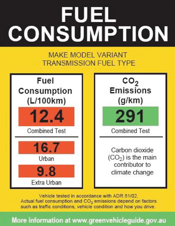 The label shows the fuel consumption of the car in litres/100km under different driving conditions and the CO2 emissions in g/km based on a standard test. This labelling is similar to the Energy Star and WELS ratings and can help you choose a more energy-efficient vehicle.