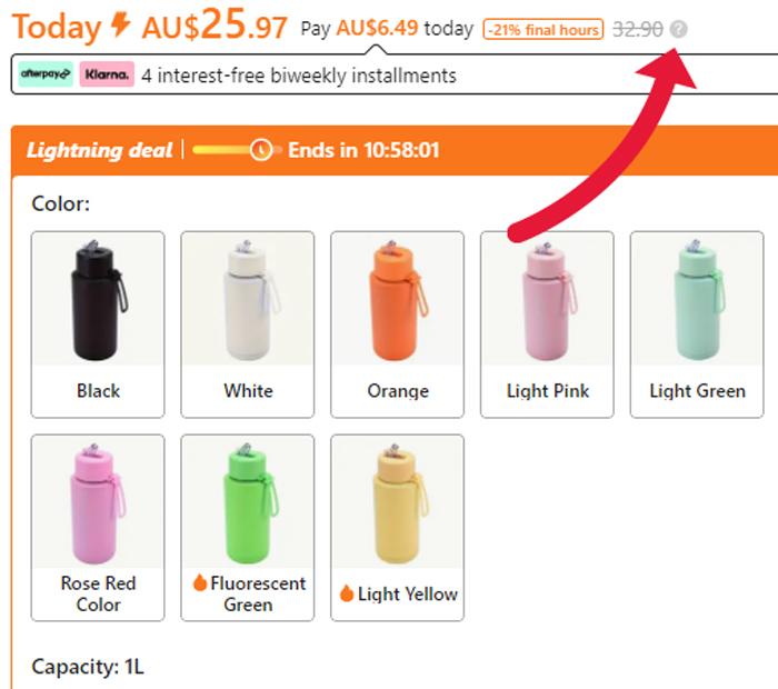 Temu uses strikethroughs on prices to suggest products we bought were usually sold for much more.