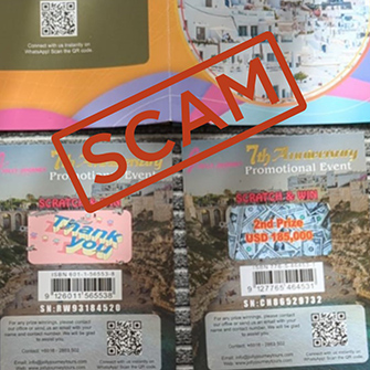 Fake travel prize scams have also appeared locally in the form of scratch cards dropped at people’s homes.