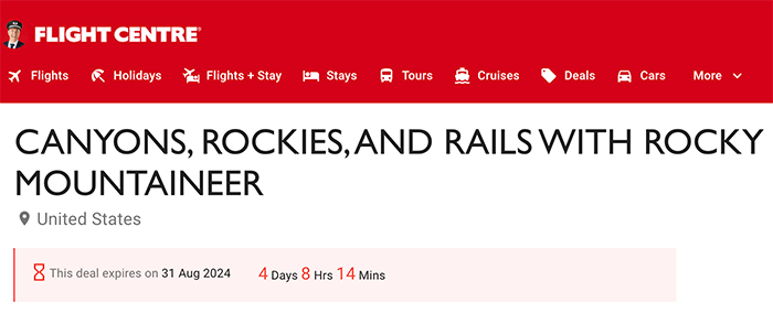 We’ve found some of the countdowns and expiry dates Flight Centre puts on tours to be unreliable. Image: Flight Centre.